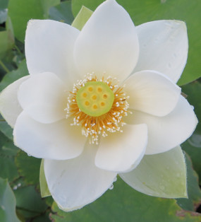 An improved very small single petal count white lotus. This is currently the smallest lotus in our collection and could be considered to be a bowl lotus.